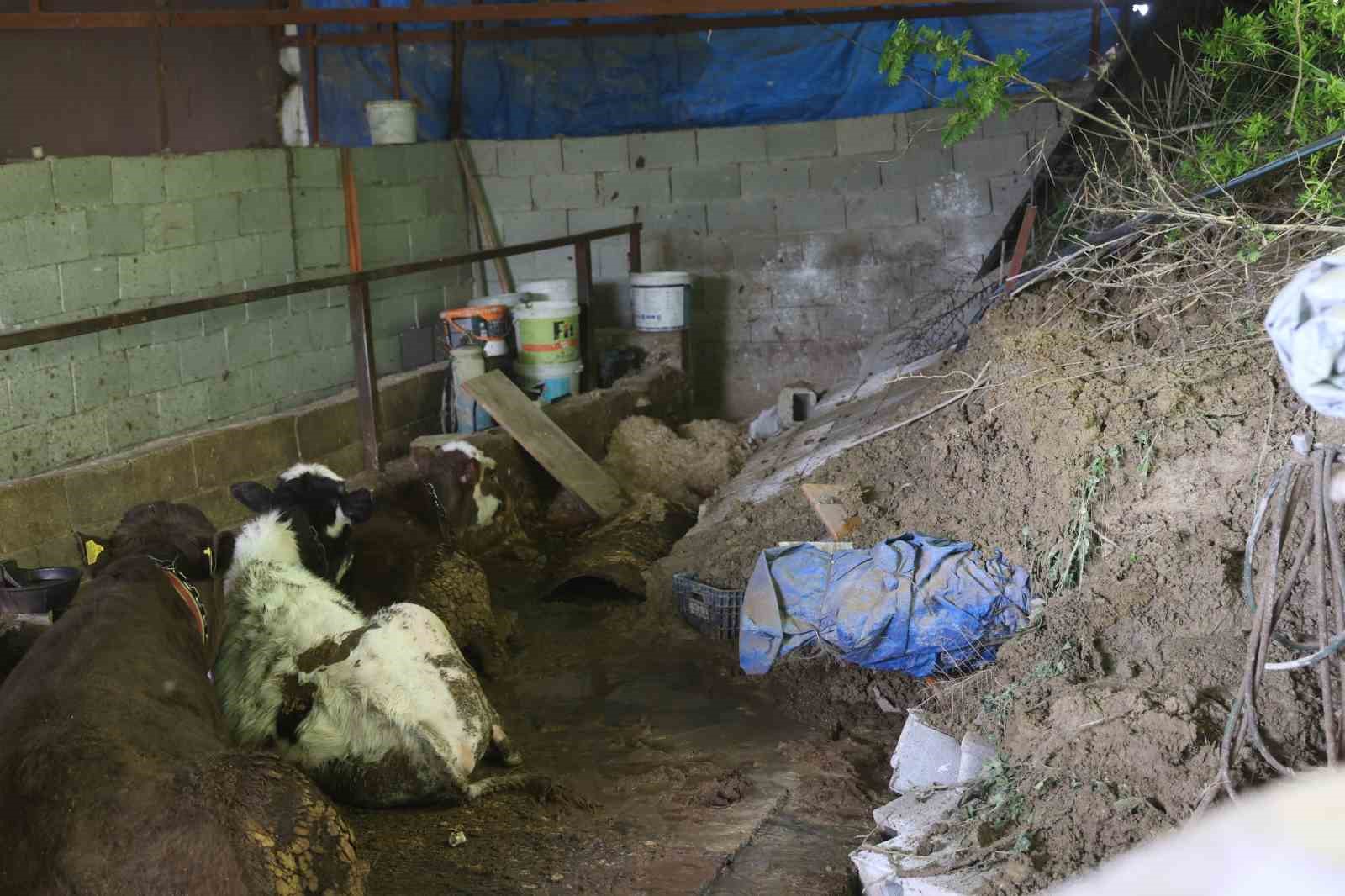 Hatay’da heyelanda önü toprakla dolan ahırda hayvanlar mahsur kaldı