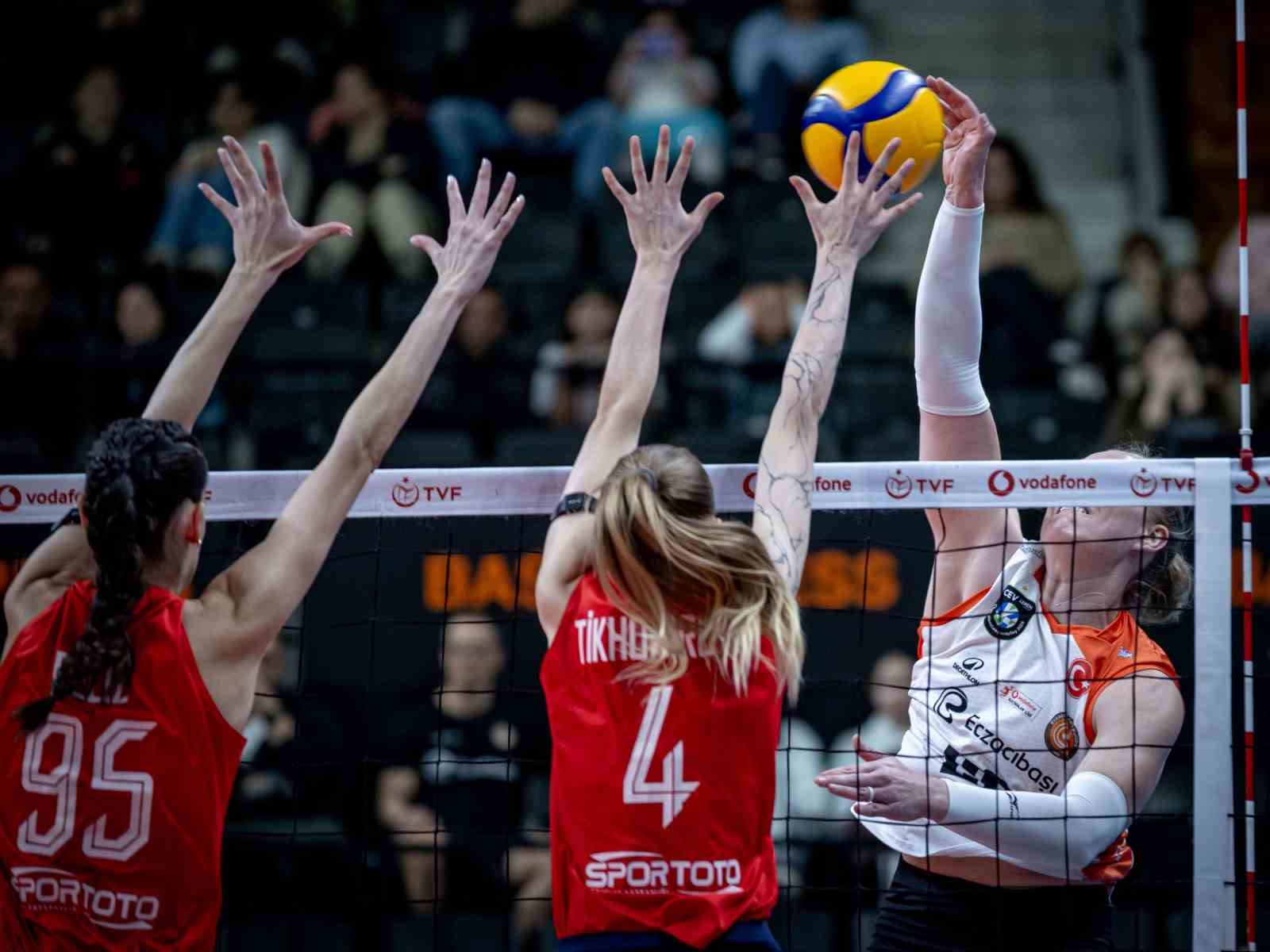 Eczacıbaşı Dynavit, Vodafone Sultanlar Ligi’nin 26. haftasında evinde Aydın Büyükşehir Belediyespor’u 3-2 mağlup etti. Eczacıbaşı Dynavit, Sultanlar Ligi’nin 26. haftasında Aydın Büyükşehir Belediyespor ile karşılaştı. Konuk ekibin üstünlüğüyle başlayan karşılaşmanın ilk setinde turuncu-beyazlılar Meliha’nın servis turunda beraberliği yakaladı. Setin ortalarına doğru ev sahibi ekip öne geçse de karşılıklı sayılarla devam eden seti Aydın ekibi 25-23 kazandı. Üstünlüğün sürekli el değiştirdiği ikinci sette konuk ekip mücadeleyi elden bırakmasa da Eczacıbaşı Dynavit hücumda oyununu etkili kurdu. Kıyasıya rekabete sahne olan maçın bu bölümünde ev sahibi ekip seti 25-22 kazanarak maça ortak oldu. Kathryn Boden 6 sayıyla sette ön plana çıktı. Karşılaşmanın üçüncü seti de büyük bir çekişmeyle başladı. Setin sonlarına doğru Eczacıbaşı Dynavit etkili oyunuyla farkı 4 sayıya kadar açtı. Aydın Büyükşehir Belediyespor setin son anlarında beraberliği yakaladı ve seti 26-24 kazanarak öne geçti. Dördüncü sete Bengisu’nun üst üste aldığı servis sayılarıyla başlayan Eczacıbaşı Dynavit moral buldu ve 5 sayılık üstünlüğü ilk anlarda elde etti. Turuncu-beyazlılar kısa sürede oyun üstünlüğüne eline aldı ve 25-19 kazarak karşılaşmayı karar setine taşıdı. Karar setine de ev sahibi ekibin üstünlüğüyle başlarken saha değişimine önde girdi. Ev sahibi seti 15-11, maçı da 3-2 kazanmayı başardı. Anna Smrek aldığı 26 sayıyla karşılaşmanın en skorer ismi oldu. Emily Maglio ise kaydettiği 20 sayıyla galibiyette önemli rol oynadı. Eczacıbaşı Dynavit’li oyuncular toplamda 15 blok ve 6 servis sayısı elde etti. Salon: Eczacıbaşı Hakemler: Nurper Özbar, Tuncay Sevim Eczacıbaşı Dynavit: Meliha, Maglio, Dilay, Boden, Bengisu, Smrek, Aybüke (L), Yaprak, Elif, Ebrar, Stysiak, Simge (L) Aydın Büyükşehir Belediyespor: Mısra, Grajber, Seher, Tikhomirova, Mijatovic, Beliz, Çerağ (L), İlarya, Hilal, Selen, Fatma Setler: 23-25, 25-22, 24-26, 25-19, 15-11 Süre: 147 dakika (33, 35, 33, 26, 20)