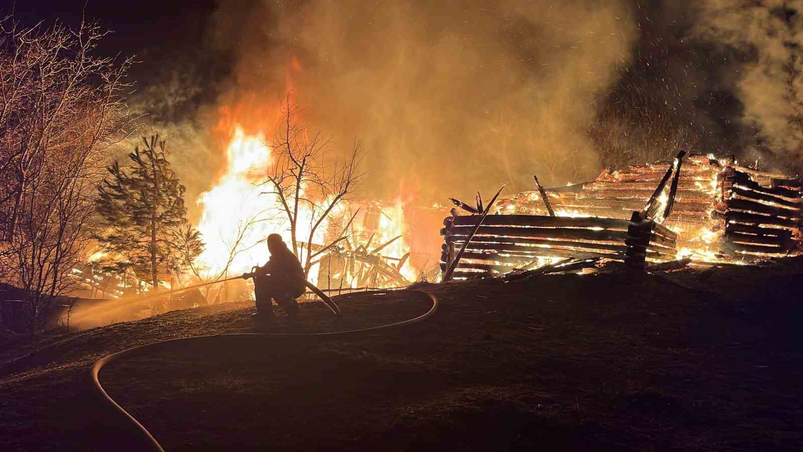 Alevlere teslim olan ahşap ev küle döndü