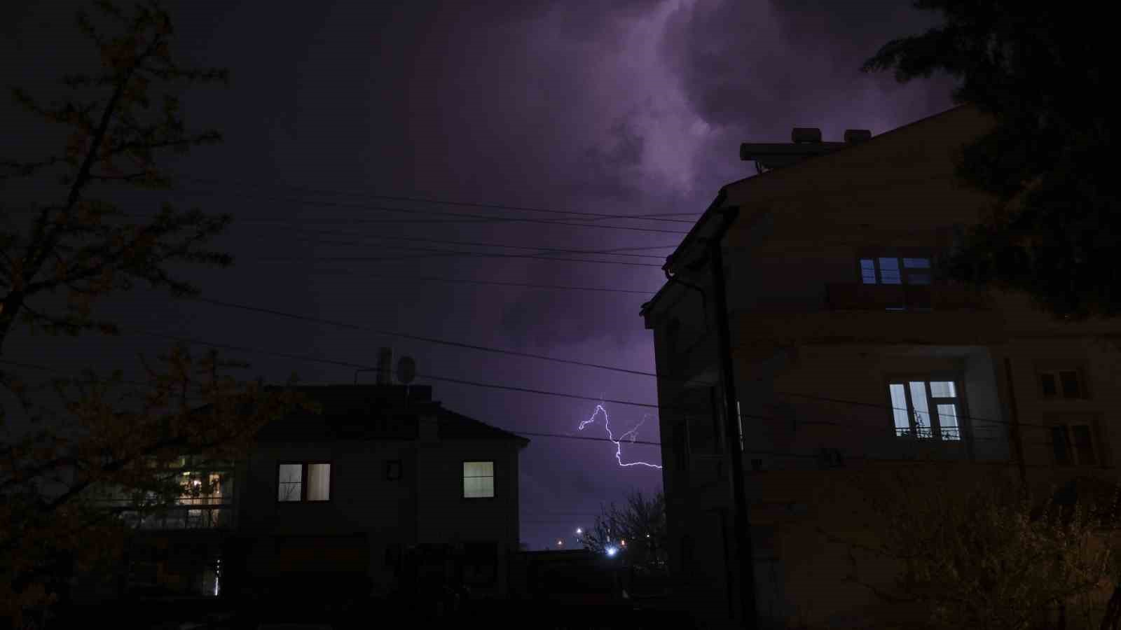 Karaman’da şimşekler geceyi aydınlattı