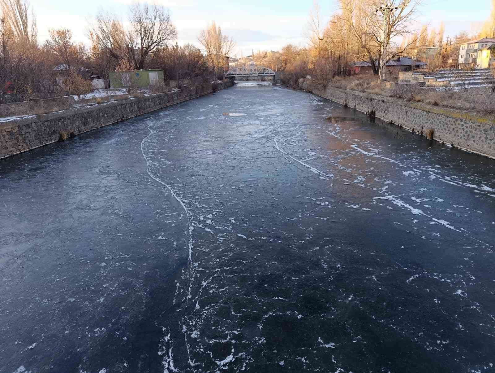 Kars eksi 15’i gördü: Kars Çayı 1 günde dondu