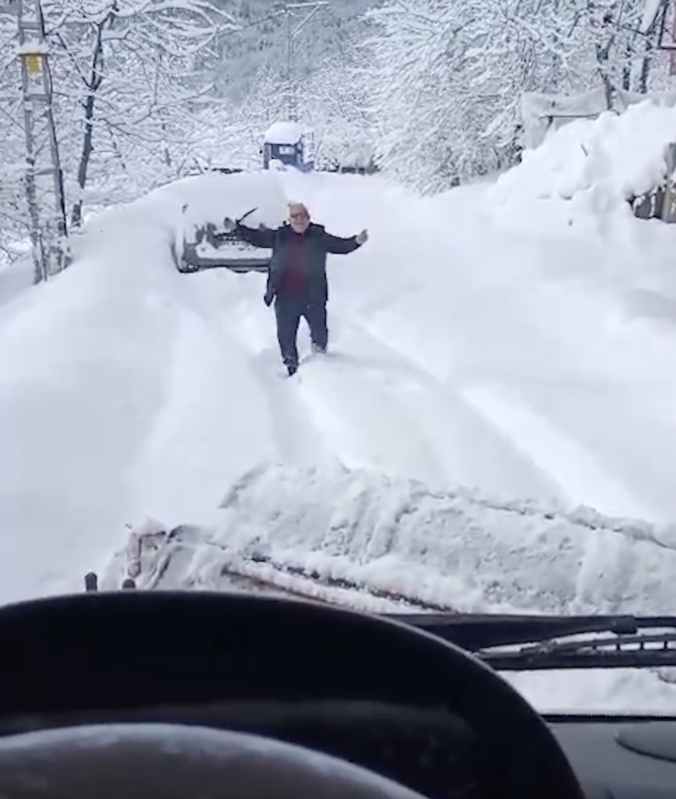 Kastamonu’nun Bozkurt ilçesinde köyünün yolu ulaşıma kapanan vatandaş, iş makinesini görünce oynayarak sevinç yaşadı. Kastamonu’da son bir haftadır etkili olan kar yağışı sebebiyle, yüzlerce köyün yolu ulaşıma kapandı. Kastamonu İl Özel İdaresi ekipleri, köy yollarının ulaşıma açılması için yoğun çaba sarf ediyor. Bozkurt ilçesine bağlı Yaşarlı köyünde yol açma çalışması sırasında, iş makinesini gören bir vatandaş oynayarak sevinç yaşadı. O anlar ise iş makinesi operatörü tarafından görüntülendi.