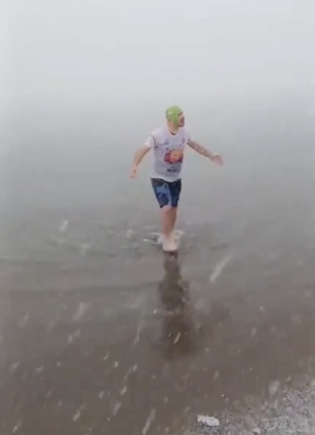 Kar altında denize girip yüzdü attı