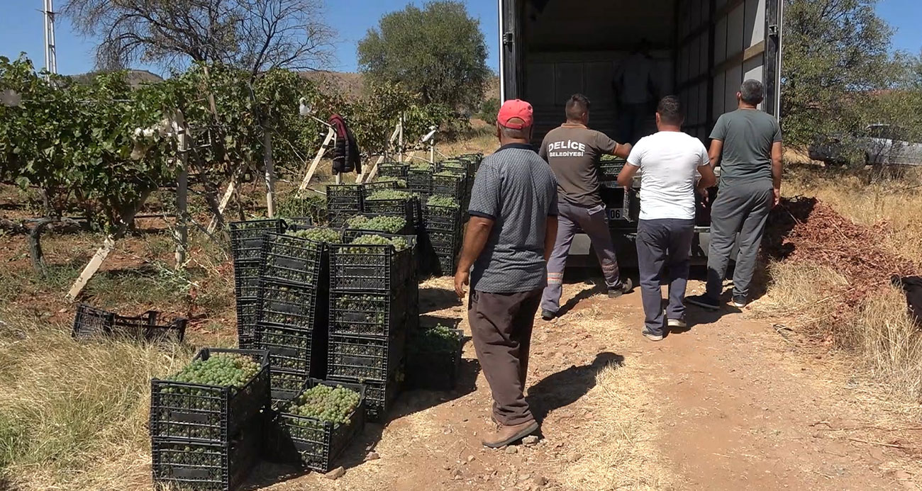 Delice Üzüm Üreticiler Birliği Başkanı Mehmet Erdem, 3 dönümlük bağında ailesi ile birlikte 8 ton üzüm hasadı yaptı. Erdem, bazı zamanlarda saz çalarak türküler söyleyip bağda çalışmayı eğlenceli hale getiriyor. Bir günde 3 dönümlük bağdan 8 tona yakın üzüm topladıklarını ifade eden Erdem, İHA muhabirine, kilosunu 30 liradan sattığı üzümlerden toplamda 240 bin lira para kazandığını söyledi.