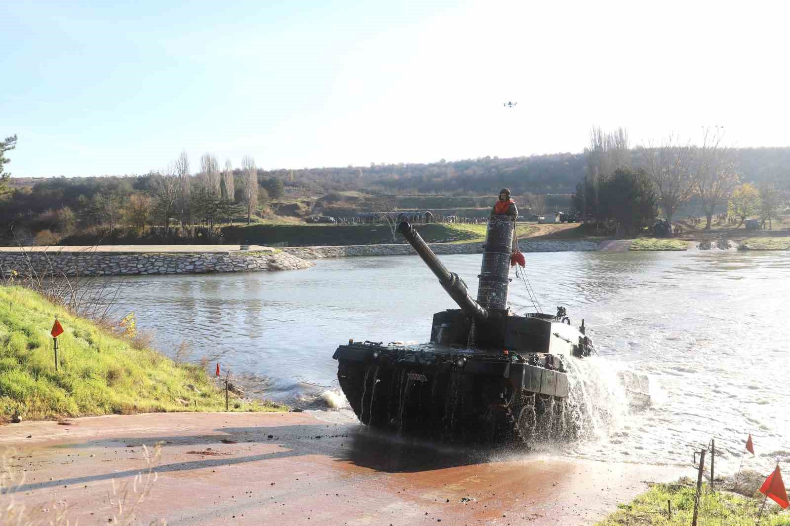 Kırklareli’ndeki Orgeneral Muhittin Önür Göleti’nde ’durgun sulardan geçiş eğitimi’ yapıldı. Milli Savunma Bakanlığı Orgeneral Muhittin Önür Göletindeki eğitimin görüntülerini paylaştı. 54’ncı Mekanize Piyade Zırhlı Tugay Komutanlığınca gerçekleştirilen durgun sulardan geçiş eğitim göz doldurdu. Eğitimde, Türk yapımı olan "Samur" karadan ilerleyip, suya girerek kısa süre seyyar köprü haline geldi. Bu seyyar köprüler kısa sürede tank ve tekerlekli askeri araçların karşı kıyıya geçişini sağladı.