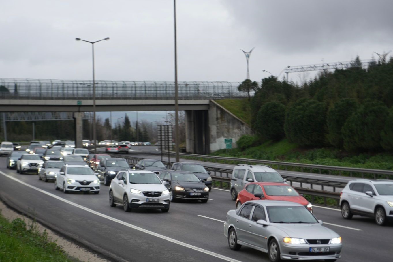 Ramazan Bayramı tatilinin son gününde, TEM Otoyolu’nun Kocaeli geçişi İstanbul yönünde zaman zaman trafik yoğunluğu oluşuyor. Tatilini memleketlerinde veya tatil beldelerinde geçiren vatandaşların dönüş yolculuğu devam ediyor. Kısa süren bayram tatilinin ardından evlerine dönmek için yola çıkan sürücüler, otoyolun İstanbul istikametinde araç sayısında belirgin bir artışa neden oldu. Özellikle Gültepe Tesisleri mevkisinde yoğunlaşan trafik, akşam saatleriyle birlikte yavaş ilerliyor. Güzergah üzerinde yolun 3 şeritten 2 şeride düştüğü daralma noktalarında araçlar yavaş seyrederken, trafik ekipleri sürücüleri takip mesafesini korumaları konusunda uyarıyor. Öte yandan, İstanbul yönündeki yoğunluğun aksine otoyolun Ankara istikametinde ise trafiğin normal ve akıcı seyrettiği görüldü.