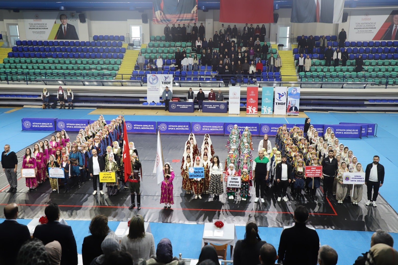 Kütahya Gençlik ve Spor İl Müdürlüğü tarafından düzenlenen 2025-2026 Eğitim Öğretim Yılı Okullar Arası Küçükler-Yıldızlar-Gençler Halk Oyunları İl Birinciliği yarışmalarının tamamlandığı açıklandı. Yarışmalar, Kütahya Yeni Spor Salonu’nda gerçekleştirildi. Renkli yöresel kostümler, uyumlu figürler ve yörelerimizin zengin kültürünü yansıtan performanslarla salon adeta bir kültür şölenine sahne oldu. İl Müdürü Bülent Küçük açıklamasında, kültürümüzü yaşatan ve sahnede emek ile yürek koyan tüm öğrencileri, onları yetiştiren öğretmenleri ve antrenörleri tebrik ederek, dereceye giren okullara başarılarının devamını diledi.