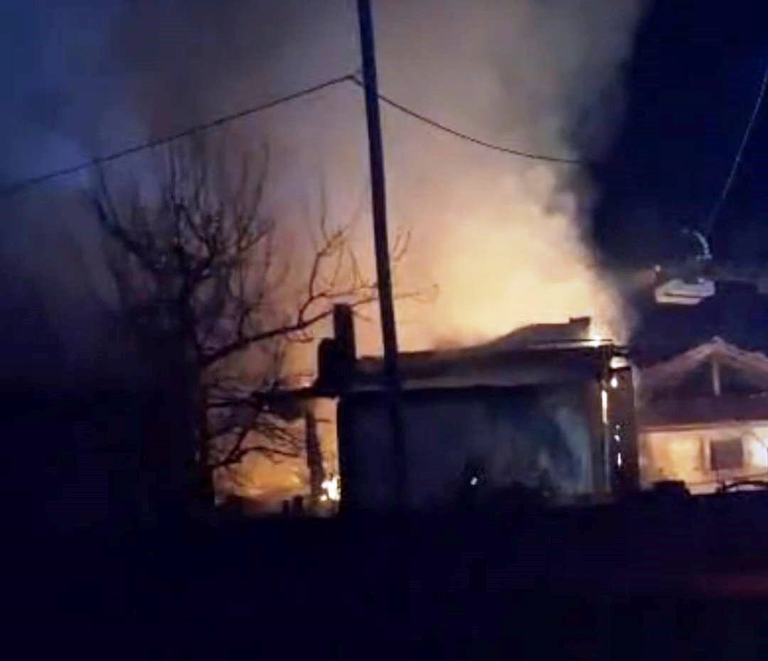 Hisarcık’ta çıkan yangında ev ve samanlık tamamen yandı