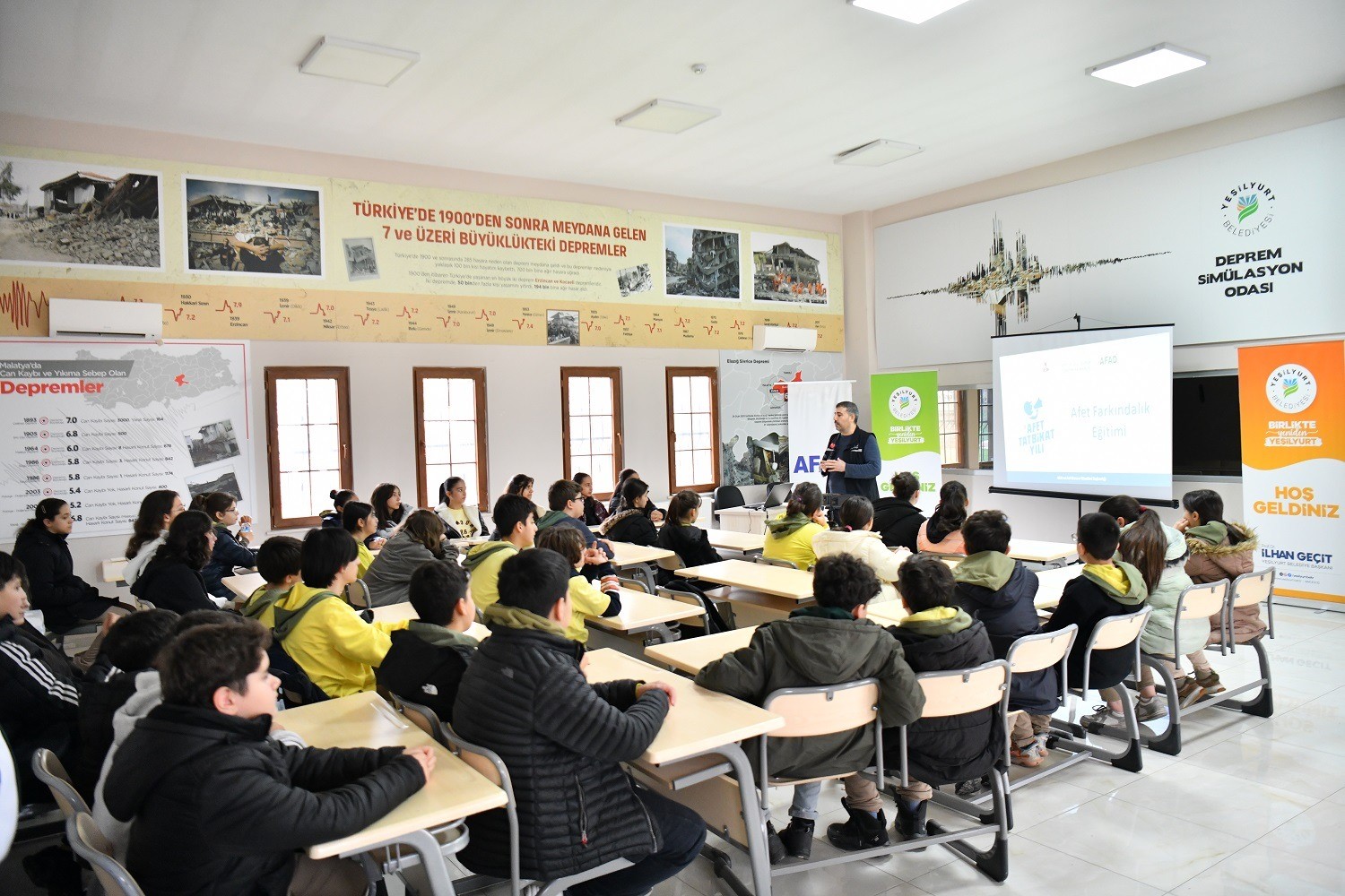 Yeşilyurt Belediyesi Afet İşleri ve Risk Yönetimi Müdürlüğü, afetlere karşı bilinçli ve hazırlıklı nesiller yetiştirmek amacıyla Deprem Eğitim ve Simülasyon Merkezinde öğrencilere yönelik kapsamlı deprem eğitimleri vermeye devam ediyor. İlçedeki farklı okullardan gelen öğrencilerin yoğun ilgi gösterdiği eğitim programlarında, deprem öncesi, deprem anı ve deprem sonrası yapılması gerekenler uygulamalı ve interaktif yöntemlerle anlatılıyor. AFAD İl Müdürlüğünde görevli alanında uzman eğitmenler tarafından verilen eğitimlerde öğrencilere; depremin nasıl oluştuğu, güvenli yaşam alanlarının önemi, afet anında panik yapmadan doğru davranışların sergilenmesi, "çök-kapan-tutun" hareketinin doğru uygulanışı ile acil durumlarda iletişim ve tahliye kuralları detaylı şekilde aktarılıyor. Eğitimlerin en dikkat çekici bölümünü ise simülasyon alanı oluşturuyor. Öğrenciler, gerçek bir deprem anını birebir yaşatan simülasyonlar sayesinde teorik bilgilerini pratiğe dökme imkanı buluyor. Deprem Eğitim ve Simülasyon Merkezinde gerçekleştirilen programlar sayesinde öğrenciler, muhtemel afetlere karşı bilinçlenirken aynı zamanda afet korkusunu yönetmeyi ve soğukkanlı kalmayı öğreniyor. Eğitimler, çocukların yaş gruplarına uygun içeriklerle hazırlanarak anlaşılır ve akılda kalıcı bir şekilde sunuluyor. Yeşilyurt Belediyesi Afet İşleri ve Risk Yönetimi Müdürlüğü yetkilileri, afet bilincinin küçük yaşlarda kazanılmasının hayati önem taşıdığını vurgulayarak, Deprem Eğitim ve Simülasyon Merkezinin sadece öğrenciler için değil, tüm vatandaşlar için önemli bir eğitim alanı olduğunu ifade ettiler. Merkezde düzenlenen eğitimlerin belirli bir program dâhilinde yıl boyunca devam edeceği, okul ziyaretlerinin ve toplu eğitimlerin sürdürüleceği belirtildi. Yeşilyurt Belediyesi, Deprem Eğitim ve Simülasyon Merkezinde verdiği bu eğitimlerle, toplumun her kesiminde afet farkındalığını artırmayı ve daha güvenli bir şehir bilinci oluşturmayı hedefliyor.