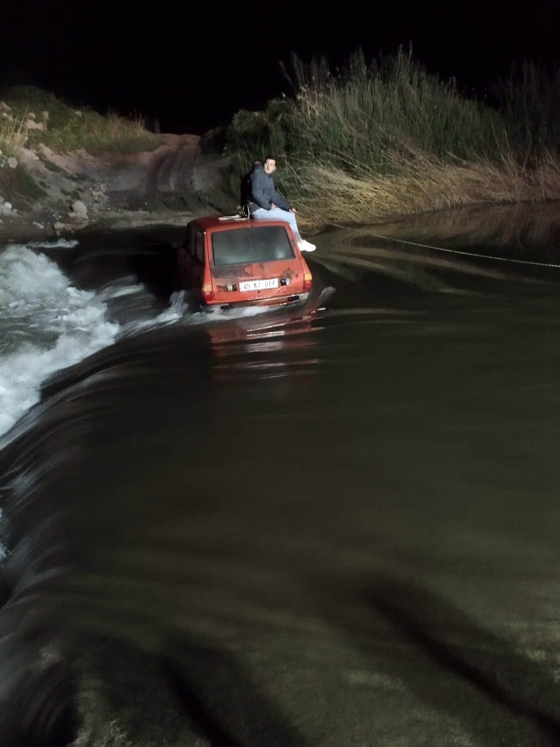 Manisa’nın Saruhanlı ilçesinde, dün gece saatlerinde Kumçay Irmağı’ndan otomobille geçmeye çalışırken akıntıya kapılarak mahsur kalan iki kişi iş makinesiyle kurtarıldı. Alınan bilgiye göre, Develi Mahallesi yakınlarında meydana gelen olayda, dere yatağından geçmeye çalışan ve içinde iki kişinin bulunduğu araç dere ortasında kaldı. Aracın üzerine çıkan vatandaşlar, yardım çağrısında bulundu. İhbar üzerine bölgeye Saruhanlı Belediyesi ekipleri, itfaiye, jandarma ve AFAD sevk edildi. Ekipler, karanlık ve zorlu arazi şartlarına rağmen kurtarma çalışması başlattı. Saruhanlı Belediyesine ait iş makineleriyle müdahale edilen olayda kepçe kovasının araca uzatılmasıyla mahsur kalan iki kişi güvenli alana alındı. Kurtarma anları cep telefonu kamerasıyla kaydedildi. Ekiplerin koordineli çalışması sonucu iki kişi de sağ olarak kurtarılırken, olayda yaralanan olmadı. Saruhanlı Belediye Başkanı Ekrem Cıllı, ekiplerin zamanında müdahalesiyle yaşanabilecek bir facianın önüne geçildiğini belirterek, vatandaşların can güvenliğinin öncelikleri olduğunu ifade etti.