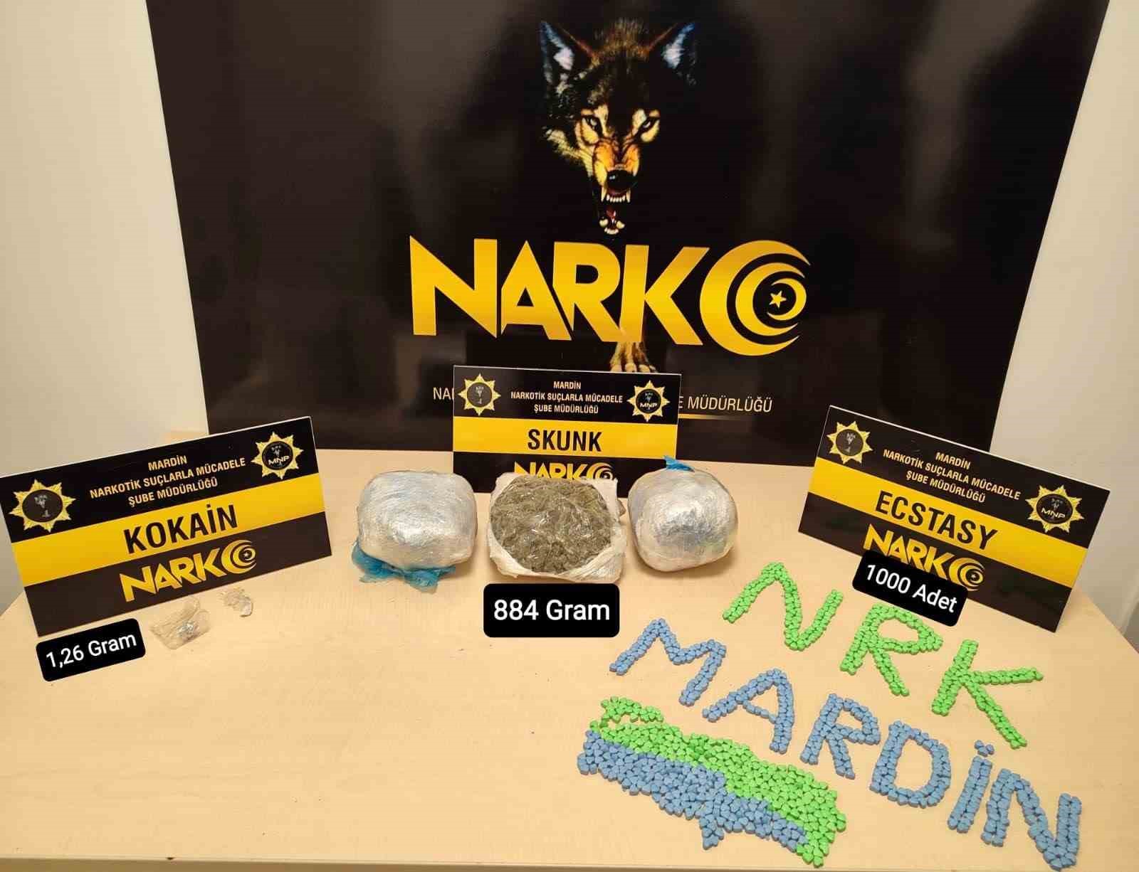 Mardin’in Artuklu ilçesinde düzenlenen uyuşturucu operasyonunda 4 şüpheli yakalandı. İl Emniyet Müdürlüğünden NSosyal medya hesabından yapılan açıklamaya göre, Narkotik Suçlarla Mücadele Şube Müdürlüğü ekipleri uyuşturucu madde ticareti ve kullanımının önlenmesine yönelik çalışma yürüttü. Bu kapsamda Artuklu ilçesinde durdurulan iki araçta yapılan aramalarda 1000 adet ecstasy hap, 884 gram skunk ve 1,26 gram kokain ele geçirildi. Operasyonda yakalanan 4 şüpheli hakkında adli işlem başlatıldı. Açıklamada, vatandaşların sağlığını ve güvenliğini tehdit eden uyuşturucu satıcılarına yönelik mücadelenin kararlılıkla sürdürüleceği belirtildi. İfadede, vatandaşların güvenliği için çalışmaların gece gündüz devam ettiği vurgulandı.