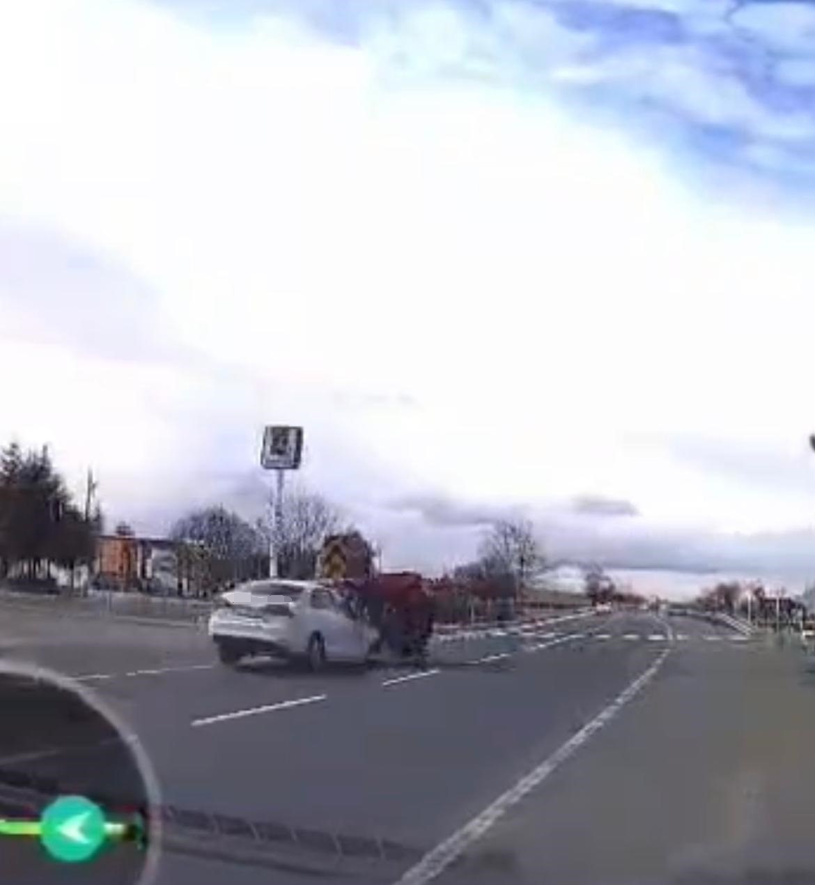 Nevşehir’in Hacıbektaş ilçesinde meydana gelen trafik kazasında 2 kişi yaralanırken, kaza anı araç kamerası tarafından saniye saniye kaydedildi. Kaza, Nevşehir’in Hacıbektaş ilçesine bağlı Kızılağıl köyü kavşağında meydana geldi. Edinilen bilgiye göre, 50 KC 539 plakalı traktörün sürücüsü H.T., kontrolsüz şekilde kavşağa girerek sola dönüş yapmak istedi. Bu sırada aynı istikamette seyreden M.T. idaresindeki 40 ACD 768 plakalı otomobil traktöre çarptı. Meydana gelen kazada her iki sürücü de yaralandı. İhbar üzerine olay yerine sağlık, polis ve jandarma ekipleri sevk edildi. Yaralılar, olay yerinde yapılan ilk müdahalenin ardından hastaneye kaldırıldı. Araç kamerası tarafından kaydedilen kazayla ilgili inceleme başlatıldı.