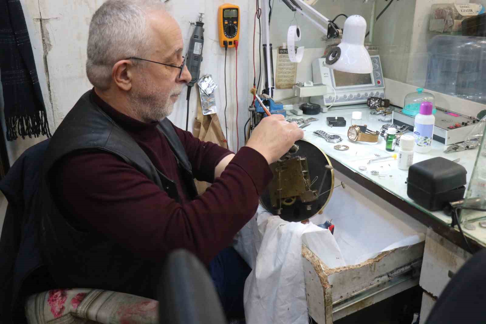 Sakarya’da eğitim için gittiği yurt dışından dönerek baba mesleği saat tamirciliğini sürdüren 66 yaşındaki Adnan Kılıç, mekanik saatleri "ameliyat eder gibi" büyük bir titizlikle onarıyor. Adapazarı ilçesinin hareketli noktalarından Dar Sokak’taki dükkanında mesleğini yaşatan Adnan Kılıç, temelleri babası tarafından 1955 yılında atılan zanaatı ilk günkü heyecanla sürdürüyor. Babasının İsviçre’de aldığı eğitimin ardından memleketinde başlattığı saatçilik serüvenini devralan Kılıç, bozulan mekanik saatlere yeniden hayat vermek için günün büyük bölümünü büyüteci ve cımbızıyla tezgah başında geçiriyor. "Bir saat için 1 saat hiç kımıldamadan çalışıyoruz" Yarım asrı aşan meslek sevgisini anlatan Kılıç, eğitim amacıyla yurt dışına gitmesine rağmen içindeki saat tutkusu ağır basınca memleketine dönerek tezgahın başına geçtiğini belirtti. Saat tamirinin yüksek odaklanma gerektirdiğini vurgulayan Kılıç, "Babamız İsviçre’de aldığı eğitimden dolayı Sakarya’ya geldiğinde burada hizmete başladı. Sevgi, aşk derler ya; saati tamir ederken, sanki insanlarla konuşuyormuş gibi mutluluk duyuyorum. Bütün zevkimiz o. Eğitim için yurtdışına gittiğimiz halde bu işi sevdiğimiz için orayı bırakıp Türkiye’ye geri döndük. Sabır ve Allah vergisi bir yetenek gerekiyor. Ellerin titrememesi gerekiyor. Sabırda çok önemli bir etmen. Tamire başlayınca aşağı yukarı bir aksesuar için yaklaşık 1 saat hiç kımıldamadan ameliyat eder gibi işliyoruz. Sabır ve sevginin olması gerekiyor. Saatlerce aynı şeyle uğraşmak kolay bir şey değil" dedi. Gençlere "zanaata yönelin" tavsiyesi Mekanik saatlere olan ilginin ve üretim kalitesinin zamanla arttığını dile getiren Kılıç, saatin dünyada vazgeçilmeyecek bir aksesuar olduğunu söyledi. Mesleğin geleceğine dair değerlendirmelerde bulunan deneyimli usta, gençlerin zorlukları nedeniyle saat tamirciliğine pek yanaşmadığını belirterek şöyle konuştu: "Ben yurt dışına eğitim için gitmiştim. Saat sevgimden dolayı Sakarya’mıza tekrar dönüp bu işi yapmaya başladım. Saat tamiri yetenek gerektirdiği için gençler pek yanaşmıyor. Genç nesil bu işi yapmak konusunda zorlanıyor. ’Biz daha kolay bir iş seçelim’ diyorlar ama bu saat tamiri mesleği tahminimce kainat yok olana kadar var olacak. Bu işi yapmayı düşünen gençlere söyleyeyim, ekonomik olarak rahata erişirler. Çocuklarımıza tek tavsiyem mesleğe yönelsinler. Gelirleri ve hayat standartları çok artacak."