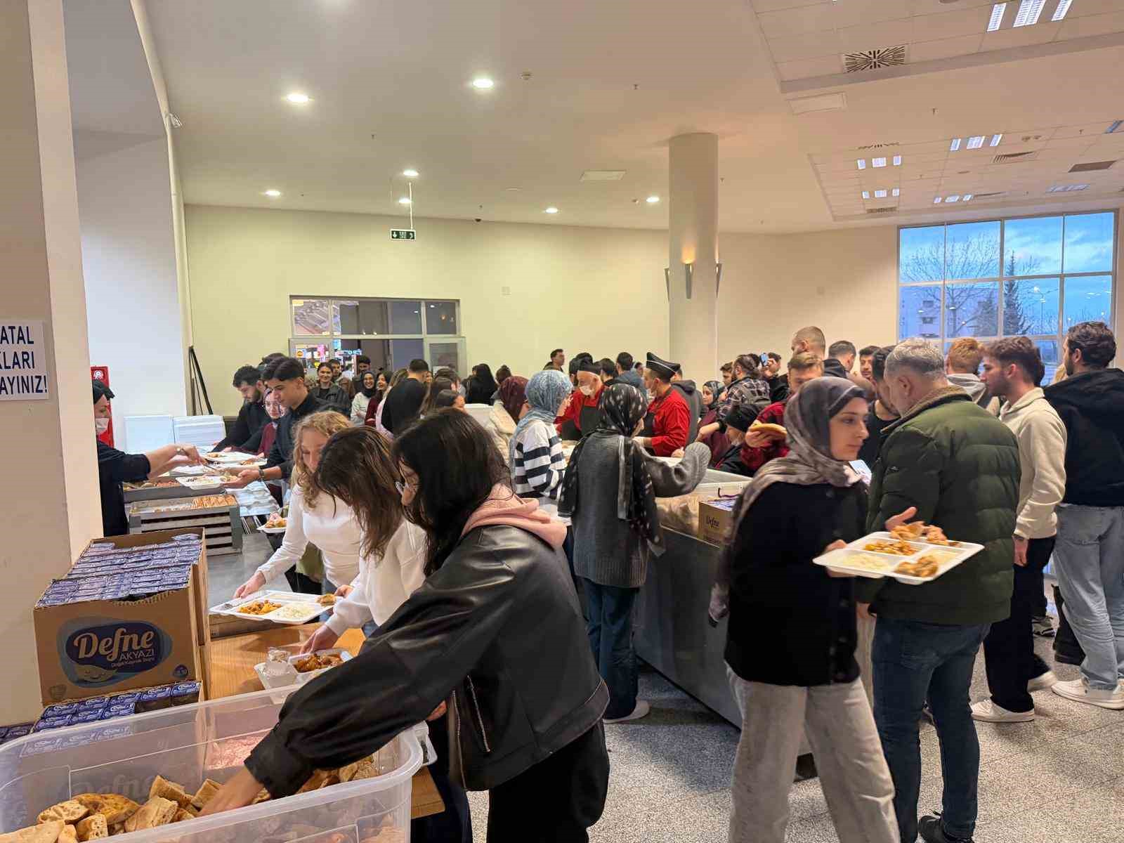 Ondokuz Mayıs Üniversitesi’nde(OMÜ) Ramazan ayı dolayısıyla kurulan ‘Birlik Sofrası’, binlerce öğrenciyi aynı masa etrafında buluşturuyor. OMÜ İftar Buluşmaları kapsamında öğrenciler, Ramazan boyunca her akşam birlikte iftar yapma imkanı buluyor. OMÜ yönetiminin aldığı karar doğrultusunda Yaşam Merkezi Yemekhanesi’nde 19 Şubat-19 Mart 2026 tarihleri arasında iftar programı düzenleniyor. Üniversite çatısı altında gerçekleştirilen organizasyon sayesinde her akşam yaklaşık bin 500 öğrenci ücretsiz iftar yapıyor. Karar, öğrenciler arasında memnuniyetle karşılandı. Etkinliğe ilişkin değerlendirmede bulunan OMÜ Genel Sekreteri Prof. Dr. Erhan Burak Pancar, Ramazan ayının birlik, beraberlik ve paylaşma kültürünü güçlendiren özel bir dönem olduğuna dikkat çekti. Üniversite olarak öğrencilerin yalnızca akademik gelişimlerini değil, sosyal ve kültürel hayatlarını da önemsediklerini belirten Pancar, aynı sofrayı paylaşmanın üniversite içindeki dayanışma ruhunu pekiştirdiğini ifade etti. Pancar, "OMÜ olarak öğrencilerimizin sadece akademik gelişimlerine değil, aynı zamanda sosyal ve kültürel yaşamlarına da katkı sağlamayı önemsiyoruz. Ramazan ayının manevi ikliminde öğrencilerimizin bir araya gelerek aynı sofrayı paylaşmaları, üniversitemizdeki birlik ve dayanışma kültürünü daha da güçlendirmektedir. OMÜ’de Birlik Sofrası etkinliği ile öğrencilerimizin kendilerini üniversite ailesinin güçlü bir parçası olarak hissetmelerini amaçlıyoruz. Ramazan ayının paylaşma ruhunu kampüsümüzde hep birlikte yaşamak bizim için büyük bir mutluluk" dedi. OMÜ Sağlık Kültür ve Spor Daire Başkanlığı koordinasyonunda yürütülen organizasyonun Ramazan ayı boyunca devam edeceği bildirildi. Programın, öğrencilerin manevi atmosferi birlikte yaşamalarına ve kampüs içinde dayanışma kültürünün güçlenmesine katkı sağlaması hedefleniyor.