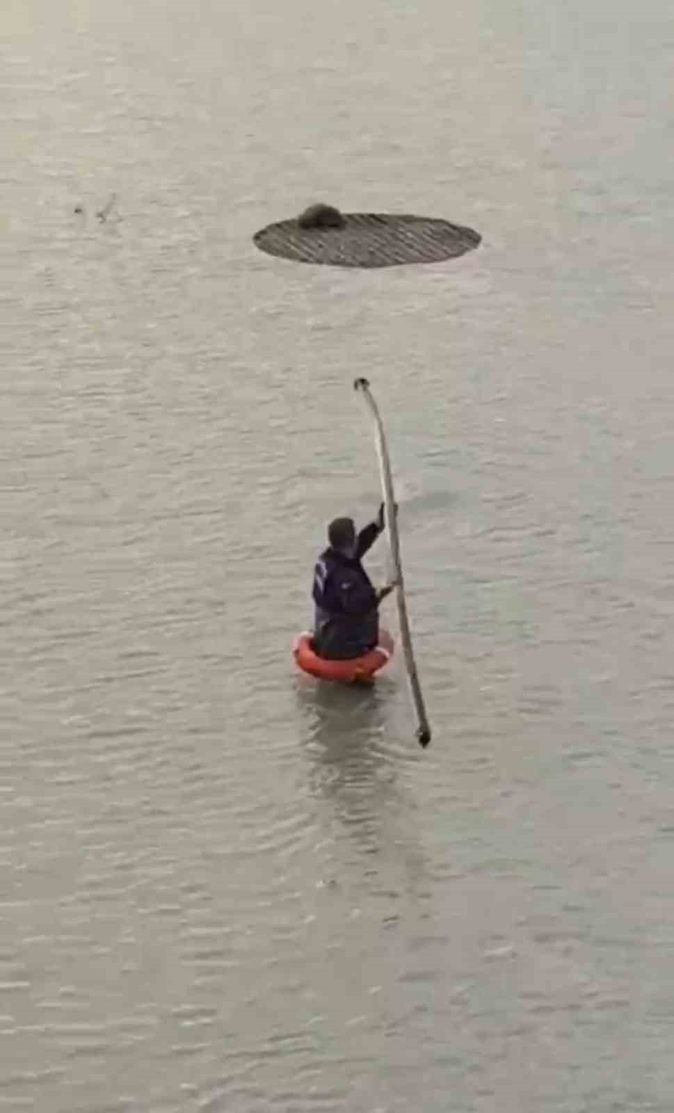 Yapay gölette mahsur kalan tilkiyi itfaiye kurtardı