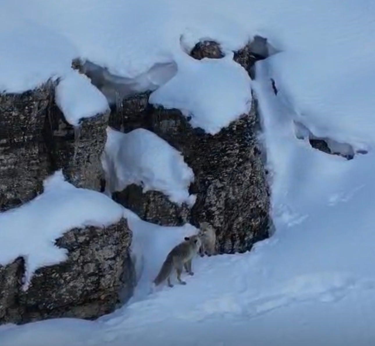 Şırnak’ın Beytüşşebap ilçesinde kar üzerinde yiyecek arayan tilkiler görüntülendi. Beytüşşebap ilçesinde çetin geçen kış şartları yaban hayvanlarını olumsuz etkiledi. Yiyecek bulmakta zorlanan tilkiler, kar üstünde avlanırken görüntülendi. Kar üstünde yürümekte zorlanan tilkiler bir süre sonra gözden kayboldu.