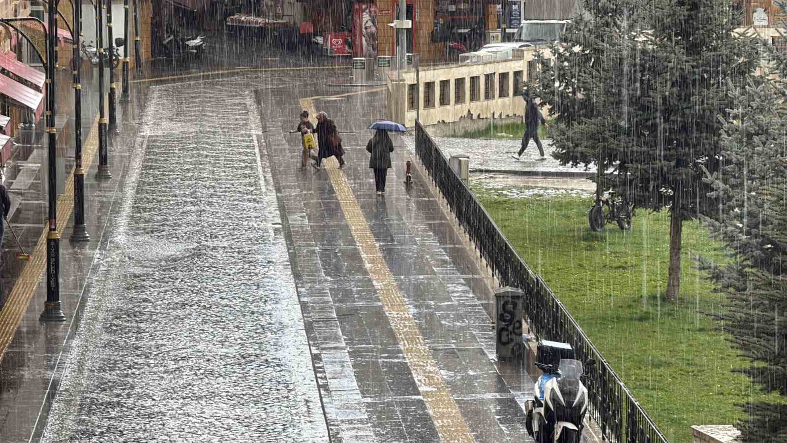 Sivas’ta öğle saatlerinde etkili olan kuvvetli yağmur hayatı durma noktasına getirdi. Yağışa hazırlıksız yakalanan vatandaşlar, sığınacak yer aradı. Meteoroloji Genel Müdürlüğü’nün kuvvetli yağış uyarısında bulunduğu Sivas’ta beklenen yağmur öğle saatlerinde etkili oldu. Hava sıcaklığının 16 derece olduğu kentte etkisini gösteren kuvvetli yağmur, hayatı durma noktasına getirdi. Yağışa hazırlıksız yakalanan vatandaşlar sığınacak yer ararken otomobiller ilerlemekte güçlük çekti. İlgili kurumlar, hafta boyunca aralıklarla devam etmesi beklenen yağmur yağışıyla birlikte sel ve taşkınlara karşı tedbirli olunması gerektiği vurguladı.