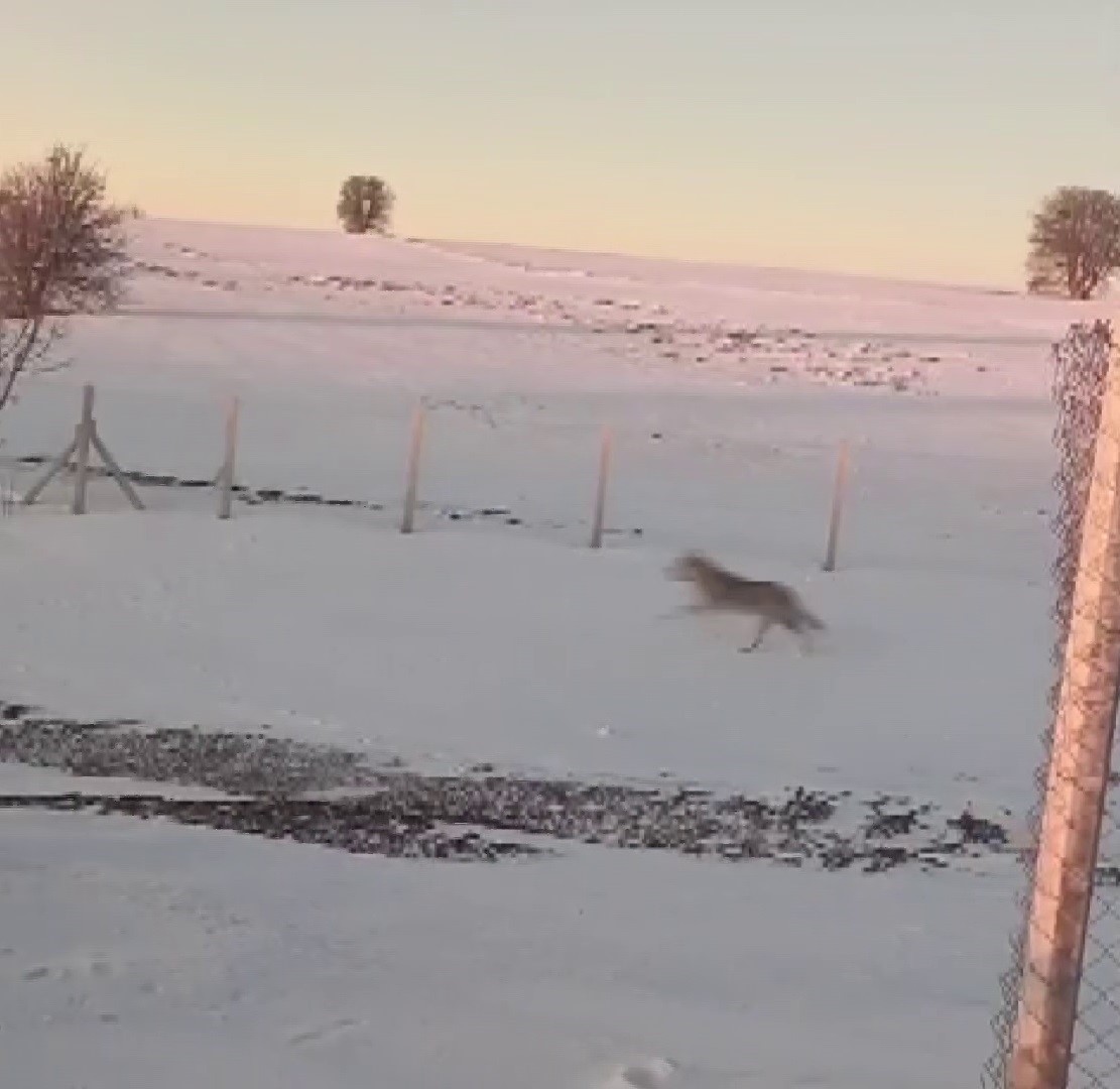 Sivas’ta tel örgülü alanda mahsur kalan bir kurdun kurtulma çabası cep telefonu kamerasına yansıdı. Kurt, bir süre çıkış aradıktan sonra telin üzerinden atlayarak sürüsüne kavuştu. Sivas’ta yaşayan Mustafa Yalçınkaya, aracıyla Kolluca köyü yakınlarında seyahat ettiği sırada yaklaşık 7-8 kurtluk bir sürüyle karşılaştı. Aracı fark eden kurtların bir kısmı hızla sağa sola dağılırken, sürüdeki kurtlardan biri tel örgülerle kaplı bir alana girdi. Tek giriş noktası bulunan alandan çıkmaya çalışan kurt, bir süre panik halinde sağa sola çarptı. Çıkış yolu arayan kurt, tel örgüleri ağzı ve pençeleriyle parçalamaya çalıştı. O anları cep telefonu kamerasıyla kayda alan Yalçınkaya, kurdun çitlerin çıkışını bulamayınca bir süre daha tel örgüler arasında dolaştığını belirtti. Kurt, sonunda tel örgülerin üzerinden atlayarak kapalı alandan çıkmayı başardı. Özgürlüğüne kavuşan kurt, kısa sürede diğer kurtların bulunduğu sürünün yanına giderek gözden kayboldu. O anlar ise Yalçınkaya’nın cep telefonu kamerasına saniye saniye yansıdı. "Telleri parçalamaya çalıştı" Daha önce bu kadar kalabalık bir kurt sürüsü görmediğini söyleyen Mustafa Yalçınkaya, "Sabah saatlerinde aracımlar Kolluca köyü yakınlarında yaklaşık 7-8 tane olan bir kurt sürüsü karşılaştım. İlk başta karşı karşıya kaldığım esnada hiçbir şekilde hareket etmediler. Daha sonra hareket etmeye başlayınca her biri bir tarafa dağılmaya başladı. Sadece içlerinden bir kurt telle kapalı bir alana girdi. Tek girişi olduğu için çıkmaya çalıştı ve kendisini bir sağa bir sola çarptı. Hatta teli ağzı ve pençesi ile parçalamaya çalışıyor. En sonunda telin üstünden atlayarak diğer sürünün yanına gitti. Uzun yıllardır bu güzergahı kullanıyorum. İlk defa bu kadar kalabalık bir sürüye denk geldim" dedi.