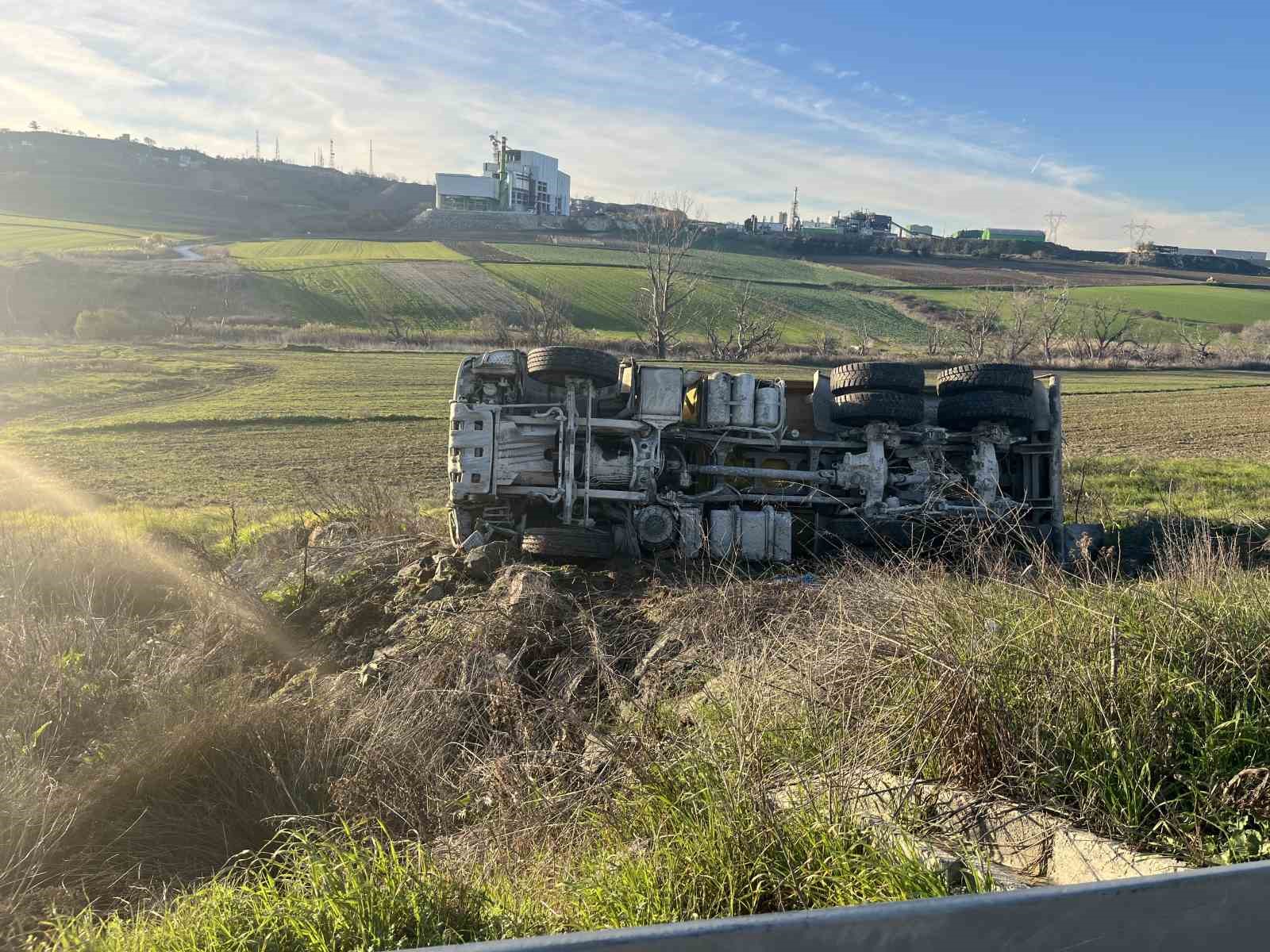 Tekirdağ Çorlu’da bariyerlere çarparak metrelerce sürüklenen kum yüklü hafriyat kamyonu tarlaya devrildi. Kamyon şoförü Mehmet Kopuz, feci kazayı burnu bile kanamadan atlatmasını emniyet kemeri takmasına borçlu olduğunu dile getirdi. Hatip Mahallesi Çorlu çevre yolu üzeri Karatepe mevkiinde feci bir kaza meydana geldi. Süleymanpaşa istikametine seyreden Mehmet Kopuz idaresindeki kum yüklü hafriyat kamyonu, iddiaya göre, sollama esnasında sürücüsünün kontrolünden çıktı. Bariyerlere çarparak metrelerce sürüklenen kamyon, tarla kenarına devrildi. Kamyon şoförü Mehmet Kopuz, devrilen araçtan yara almadan sağ salim çıktı. Kazayla ilgili konuşan Kopuz, "Bu olaydan yara almadan kurtulmamı, emniyet kemerine bağlıyorum. Emniyet kemerini takmasam camdan fırlardım" diye konuştu.