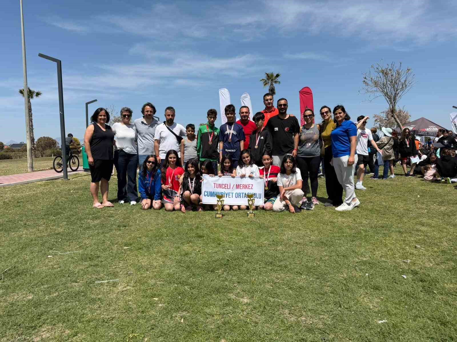 Türkiye Triatlon Final Yarışması’nda Tunceli Merkez Cumhuriyet Ortaokulu öğrencileri Türkiye üçüncüsü oldu. Antalya’nın Serik ilçesinde 11-13 Nisan 2026 tarihleri arasında düzenlenen Türkiye Triatlon Final Yarışması’nda Tunceli Merkez Cumhuriyet Ortaokulu öğrencileri başarıya imza attı. Tunceli Merkez Cumhuriyet Ortaokulu yıldız erkekler ve küçük kızlar kategorilerinde Türkiye üçüncüsü oldu. Elde edilen derecede Tunceli Merkez Cumhuriyet Ortaokulu öğrencileri Zeynep Kanılmaz, Bergüzar Defne Dıvrak, Şirin Devin Doğan, Duru Lara Ateş, Solin Raya Uyğur, Ali Çınar Kalkan, Ali Çağan Say ve Rüzgar Toprak Kalkan yer aldı. Öğrenciler yarışmaya, yüzme antrenörleri Bülent Demir, İbrahim Halil Cihantimur ve Beden Eğitimi Öğretmeni Nurgül Dıvrak refakatinde hazırlandığı belirtildi.