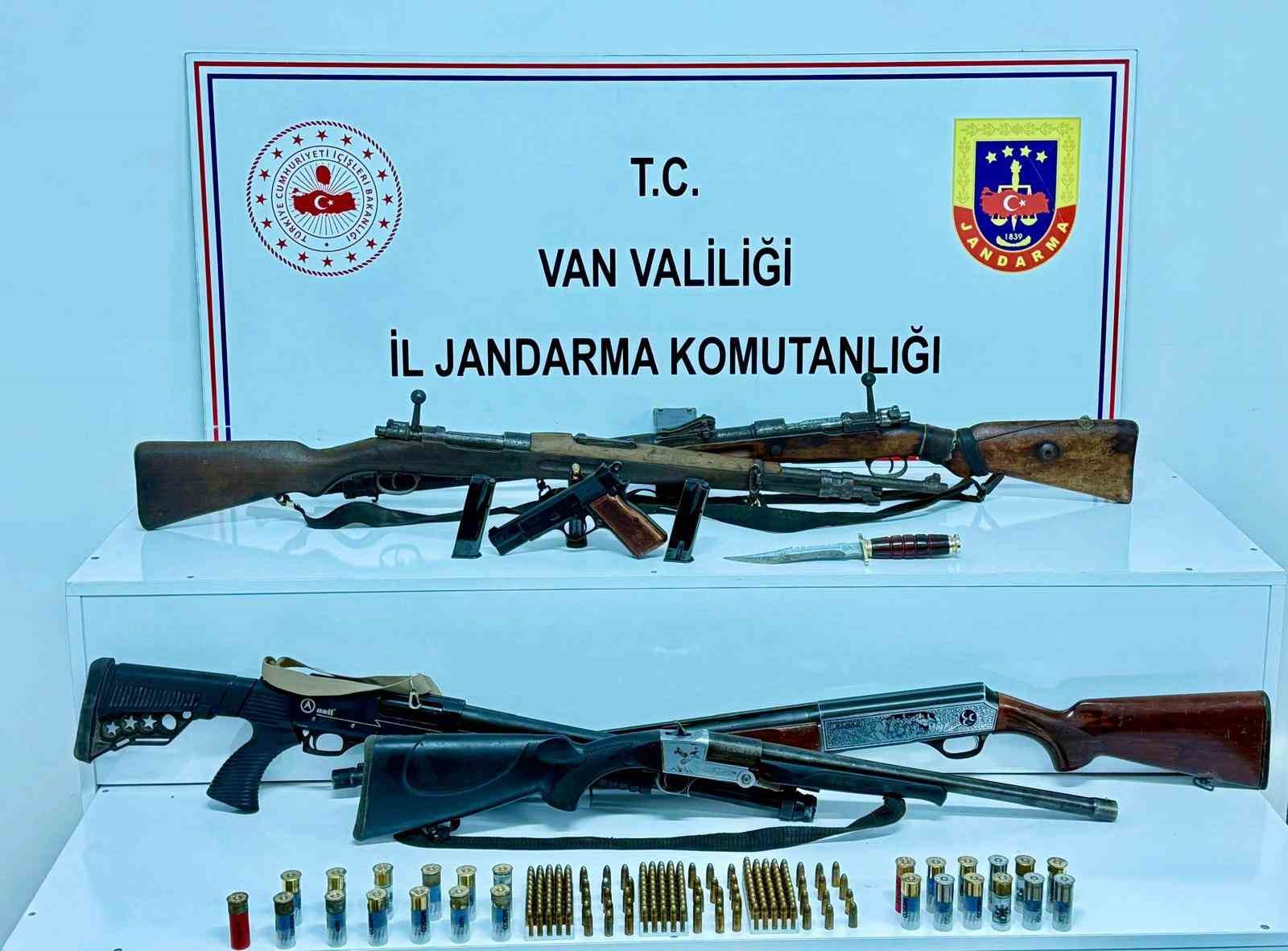 Van’ın Erciş ilçesinde jandarma ekiplerince yapılan çalışmalar sonucunda silah ele geçirildi. Van Valiliği’nden yapılan açıklamada, İl Jandarma Komutanlığı Erciş İlçe Jandarma Komutanlığı Asayiş Jandarma Bölük Komutanlığınca Erciş ilçesi Haydarbey Mahallesi’nde arama yapıldığı belirtildi. Açıklamada, "Y.A. (60) isimli şahsa ait ev ve eklentilerinde yapılan adli arama sonucunda, 2 adet uzun namlulu silah, 1 adet tabanca, 3 adet tabancaya ait şarjör, 193 adet 9x9 mm fişek, 1 adet yarı otomatik av tüfeği, 25 adet av tüfeğine ait fişek, 1 adet tek kırma av tüfeği, 1 adet pompalı av tüfeği ve 1 adet kasatura ele geçirilmiştir. Şüpheli Y.A. hakkında adli işlemler başlatılarak gözaltına alınmıştır" denildi.