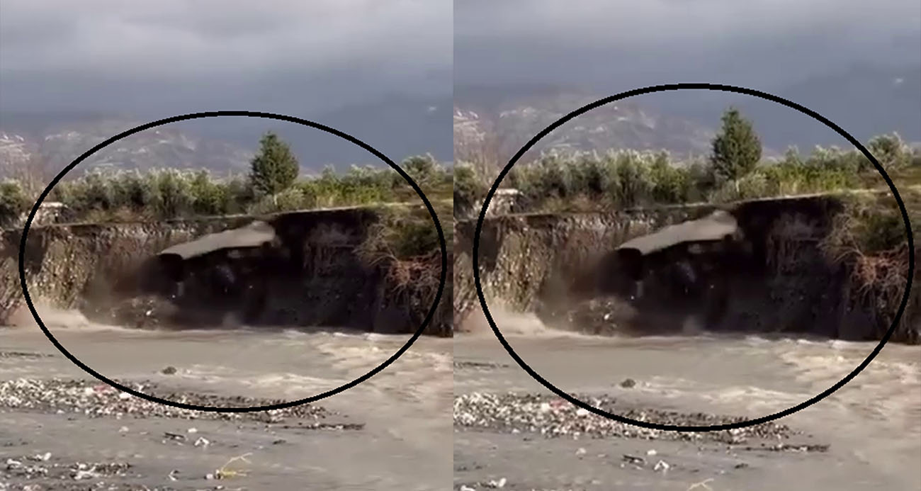 Aşırı yağışla birlikte yolda yaşanan çökme anı görüntülendi