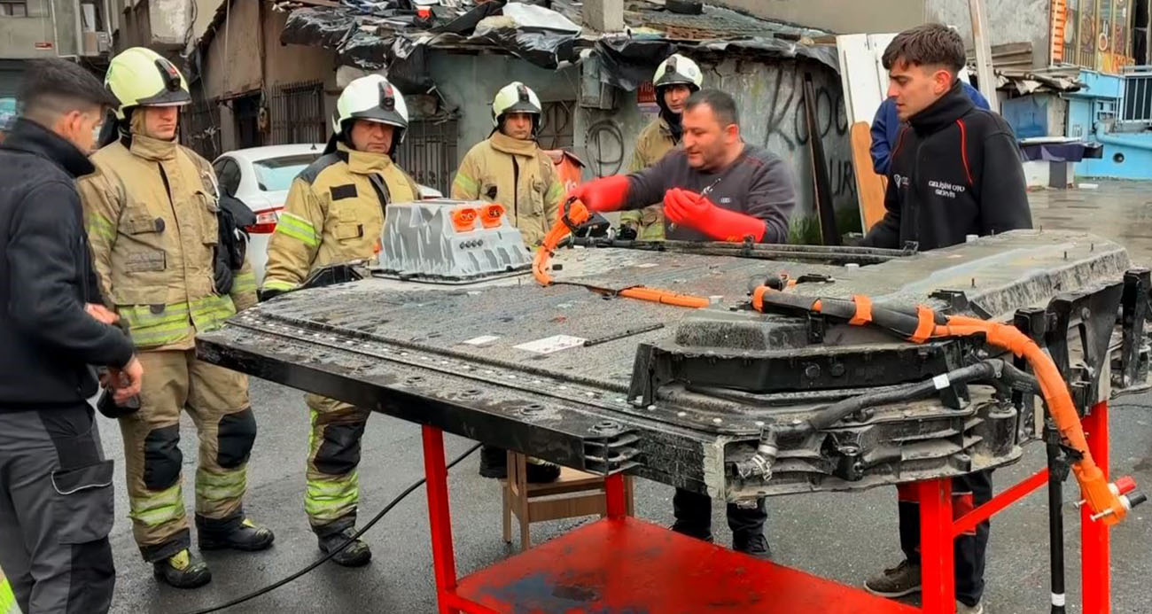 Sarıyer’de elektrikli aracın bataryasında yaşanan parlama kamerada
