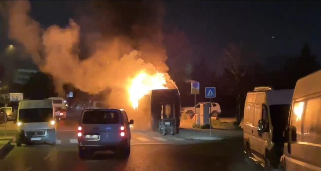 Kağıthane’de park halindeki midibüs alevlere teslim oldu