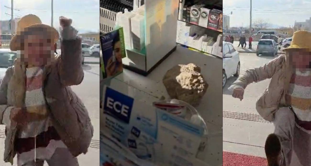 Fark ücreti vermek istemeyen kadın eczaneye taşla saldırdı, kapıları tekmeledi