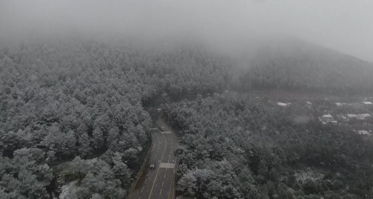 Aydos’ta etkili olan kar yağışı havadan görüntülendi