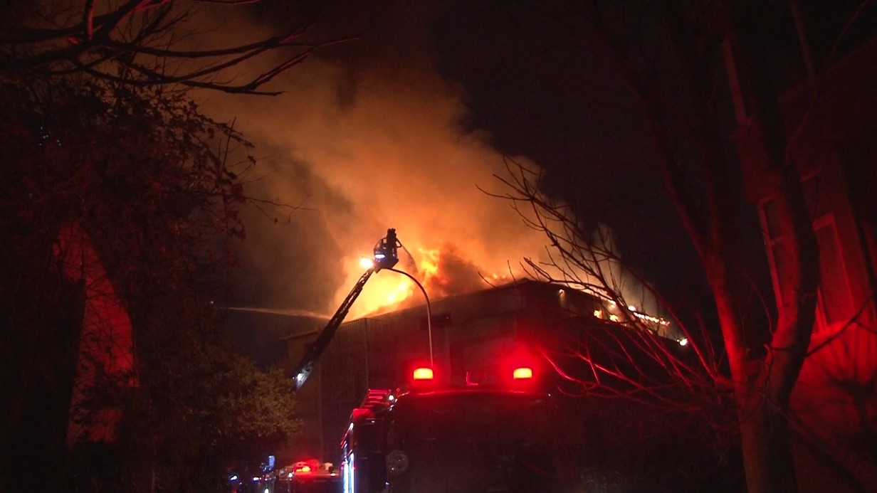 Üsküdar'da iki katlı metruk bina alev alev yandı