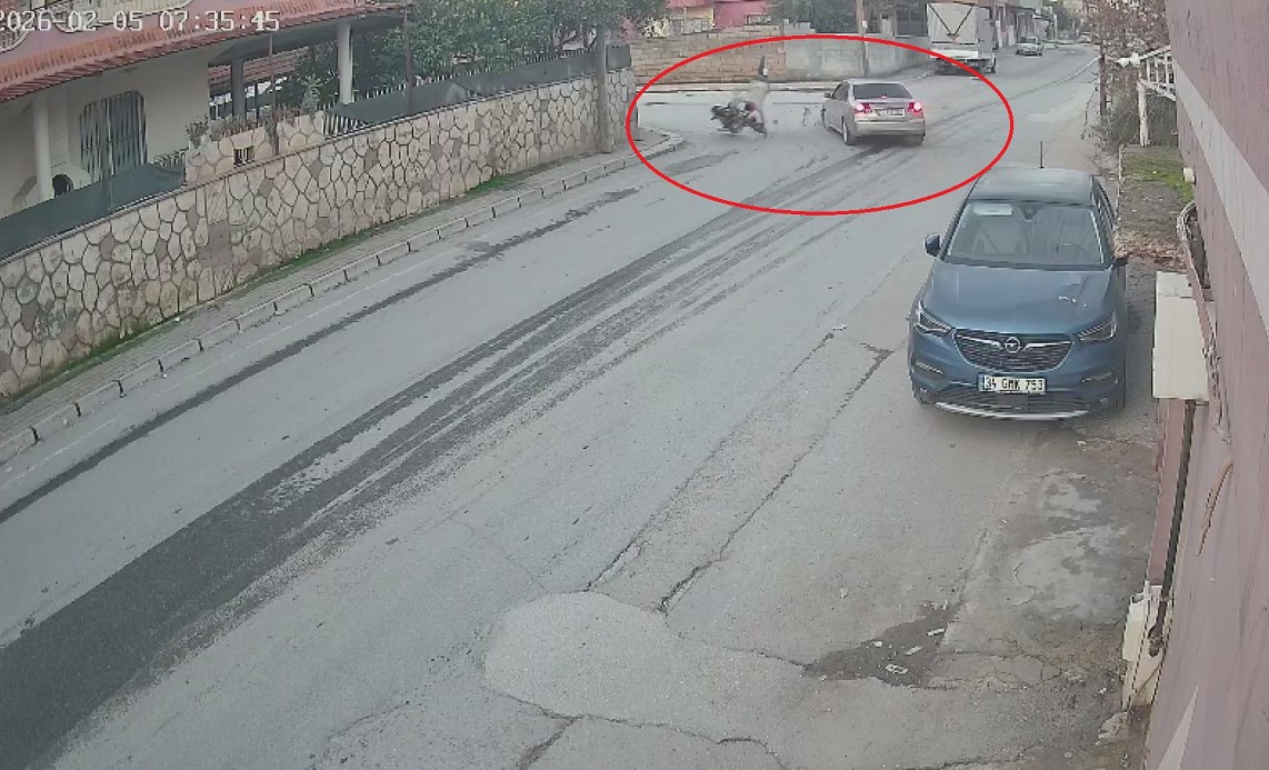 Otomobille çarpışan motosiklet sürücüsünün metrelerce havaya savrulduğu anlar kamerada