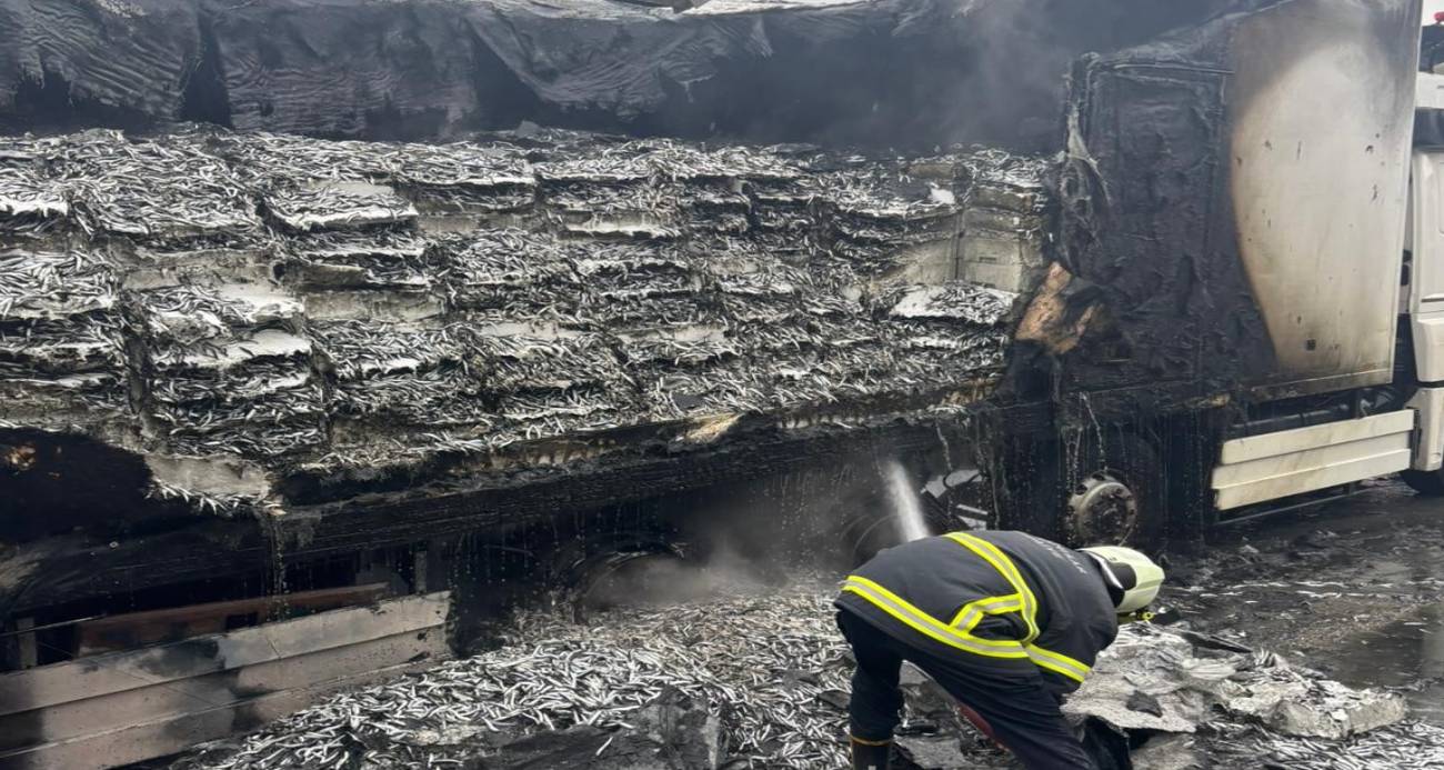 Hamsi yüklü tır alevlere teslim oldu: Dorse kullanılamaz hale geldi