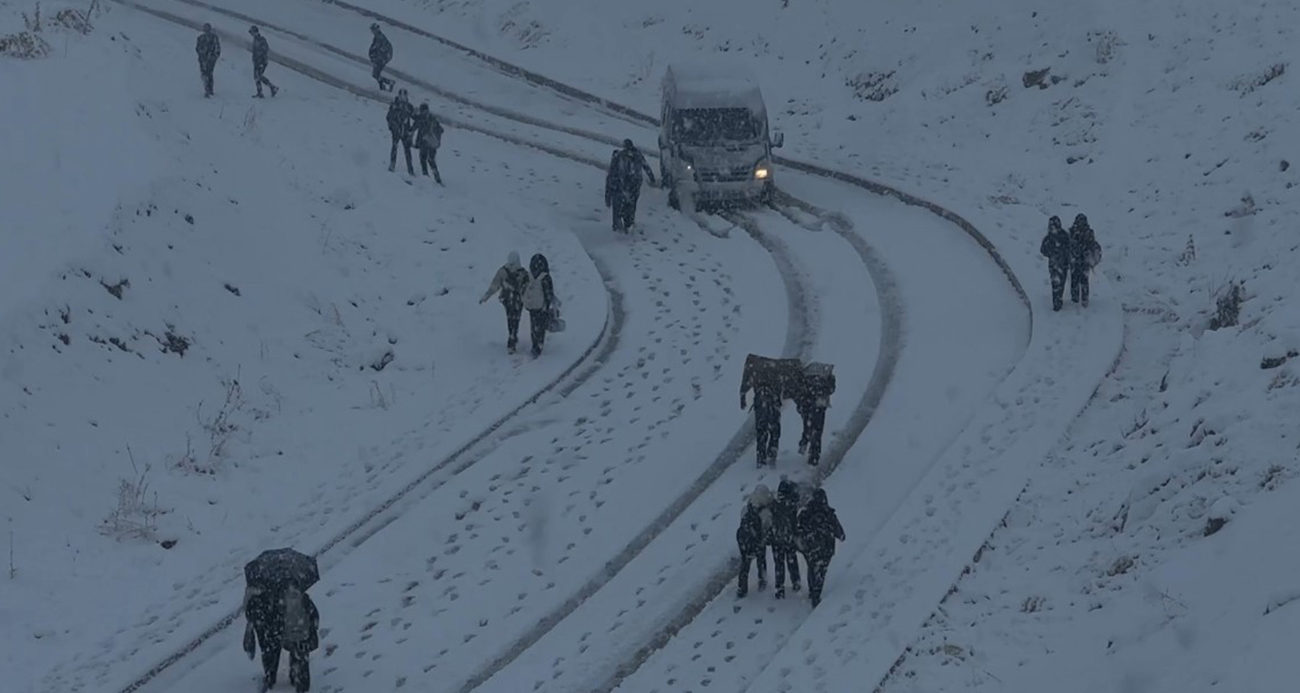 Uludağ’da yoğun kar var...Ekipler yolların kapanmaması için aralıksız çalışıyor