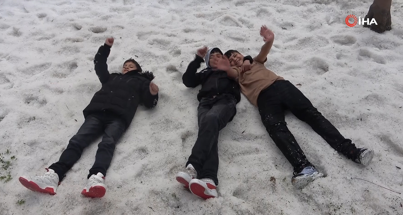 Adana’da nisan ayında çocukların kar topu keyfi