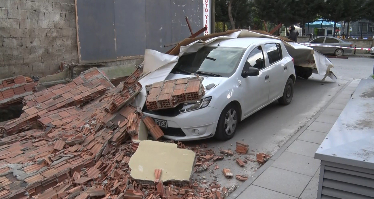 Maltepe'de inşaatın istinat duvarı arabanın üzerine yıkıldı