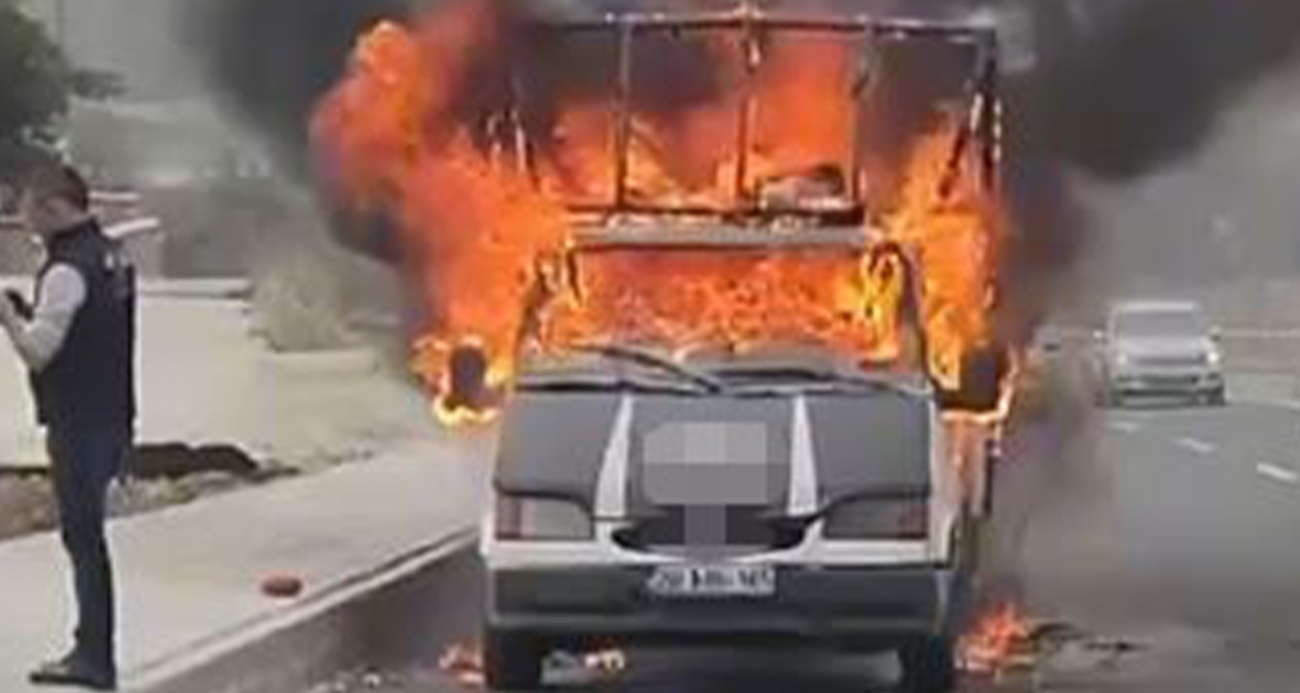 Denizli'de seyir halindeki araç alevlere teslim oldu