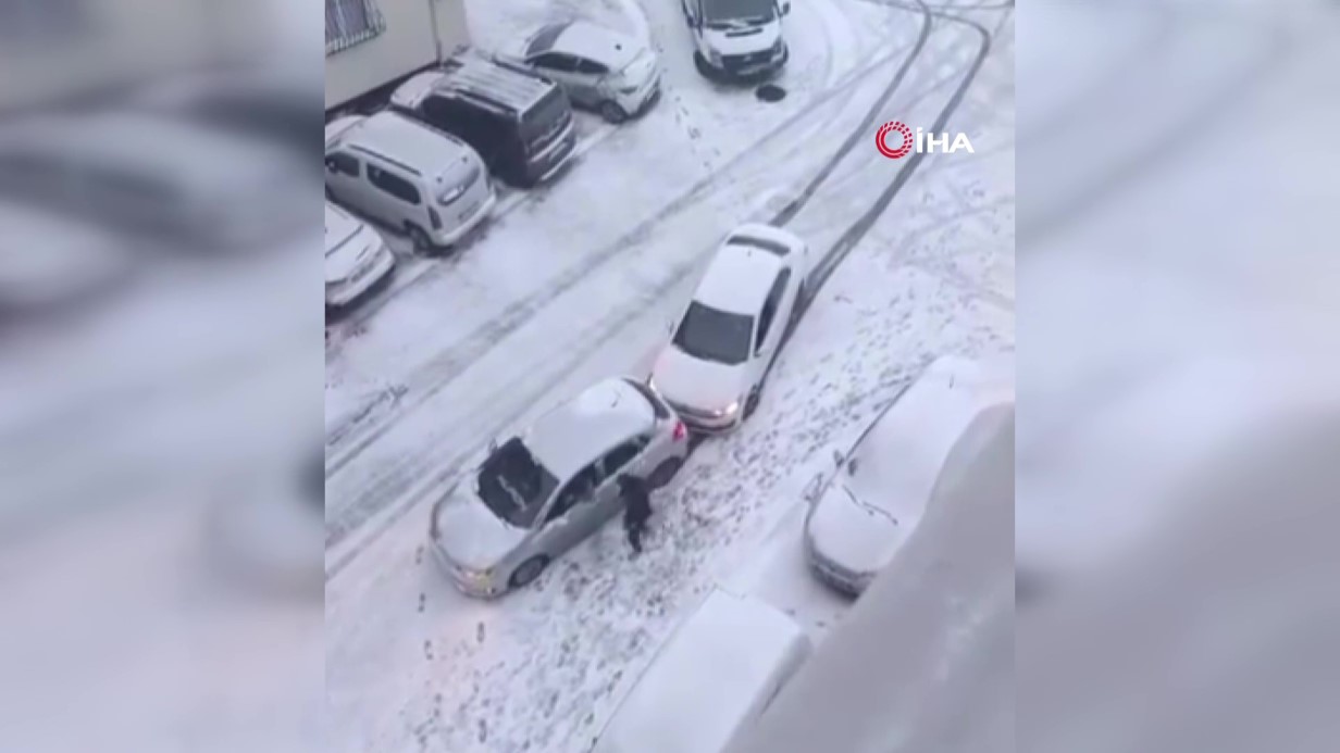Esenyurt'ta yollar buz pistine döndü, kayan araçlar kaza yaptı