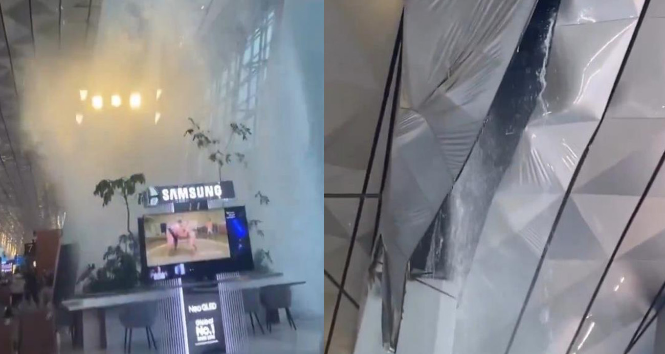 Endonezya'da şiddetli yağış nedeniyle havalimanı çatısı çöktü