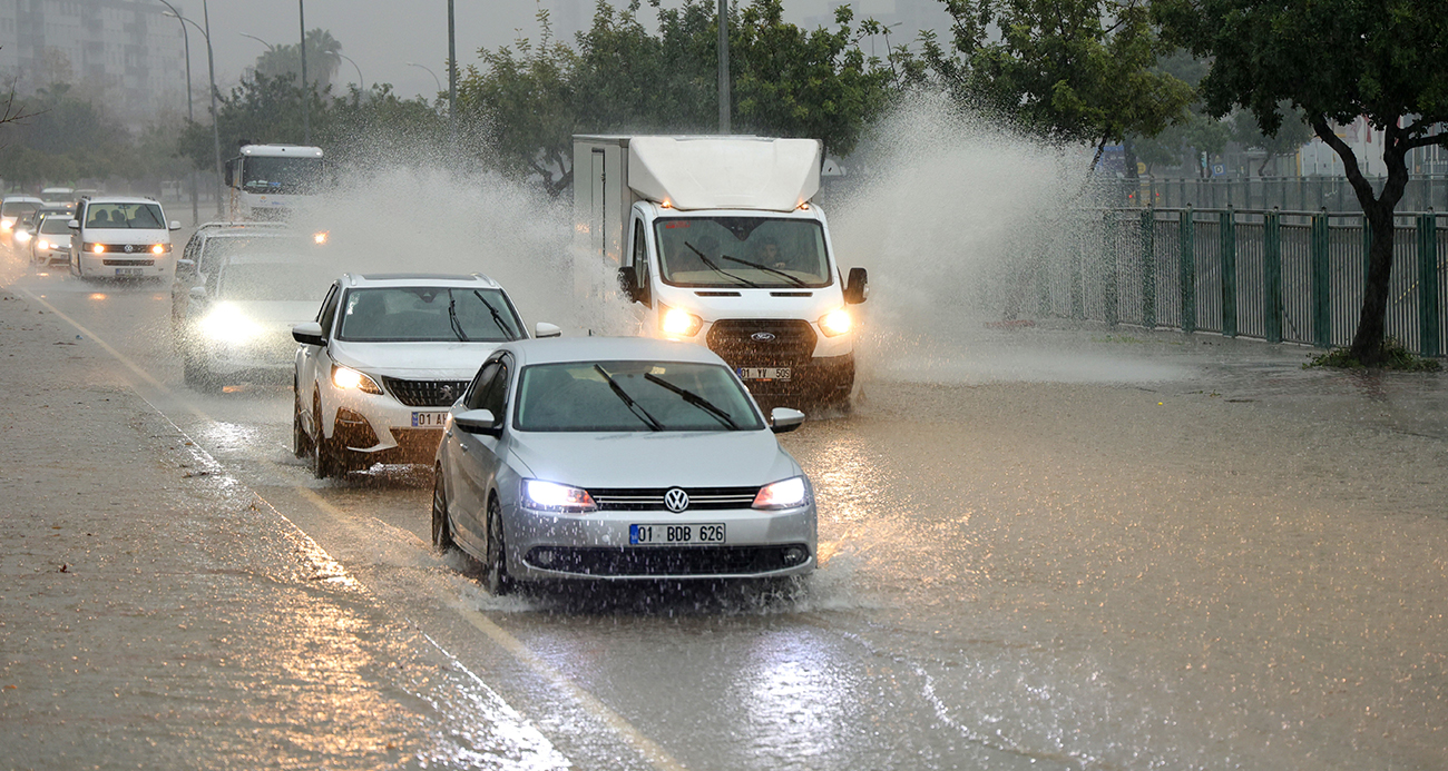 Adana’da şiddetli yağış yolları göle çevirdi, apartmanları su bastı