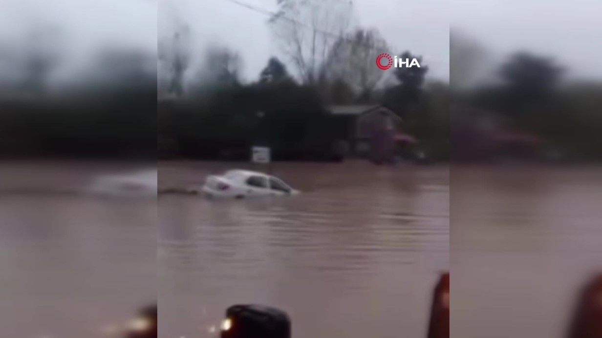 Sarıyer Kilyos yolu yağış nedeniyle göle döndü