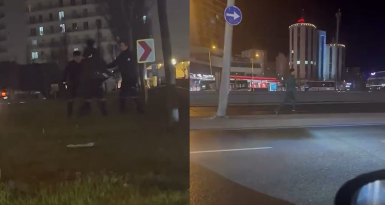 Telefon çalan adam E-5’e kaçtı, bekçiler minibüse binerek kovaladı