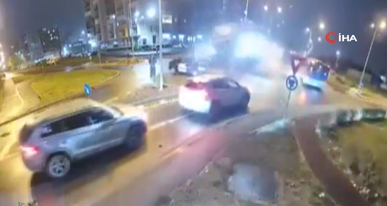 Romanya'da kavşağa çarparak havalanan araç, iki aracın üzerinden uçtu