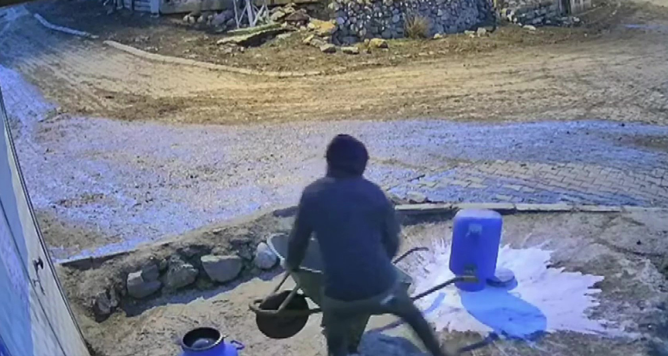 Bir bidon sütü deviren gencin çaresiz anları kamerada