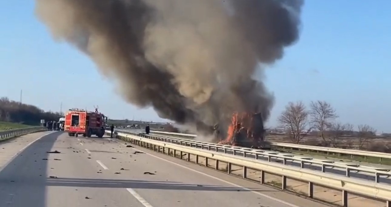 Edirne’nin Havsa ilçesinde seyir halindeki domates yüklü tırda çıkan yangın itfaiye ekiplerinin müdahalesiyle söndürüldü. Edinilen bilgiye göre, Havsa ilçesine bağlı Çukurköy mevkiinde, seyir halindeki domates yüklü tırın dorsesinden dumanlar yükselmeye başladı. Durumu fark eden sürücü aracı yol kenarına çekerek 112 Acil Çağrı Merkezi’ne ihbarda bulundu. Olay yerine itfaiye ve jandarma ekipleri sevk edildi. Kısa sürede büyüyen alevler tırı sararken, ekiplerin müdahalesi sonucu yangın kontrol altına alınarak söndürüldü. Yangın nedeniyle kara yolunda ulaşım bir süre kontrollü olarak sağlandı. Olayda ölen ya da yaralanan olmazken, tır tamamen kullanılamaz hale geldi. Araçta bulunan yüklü miktardaki domatesin büyük bölümünün zarar gördüğü öğrenildi. Yangının çıkış sebebine ilişkin inceleme başlatıldı.