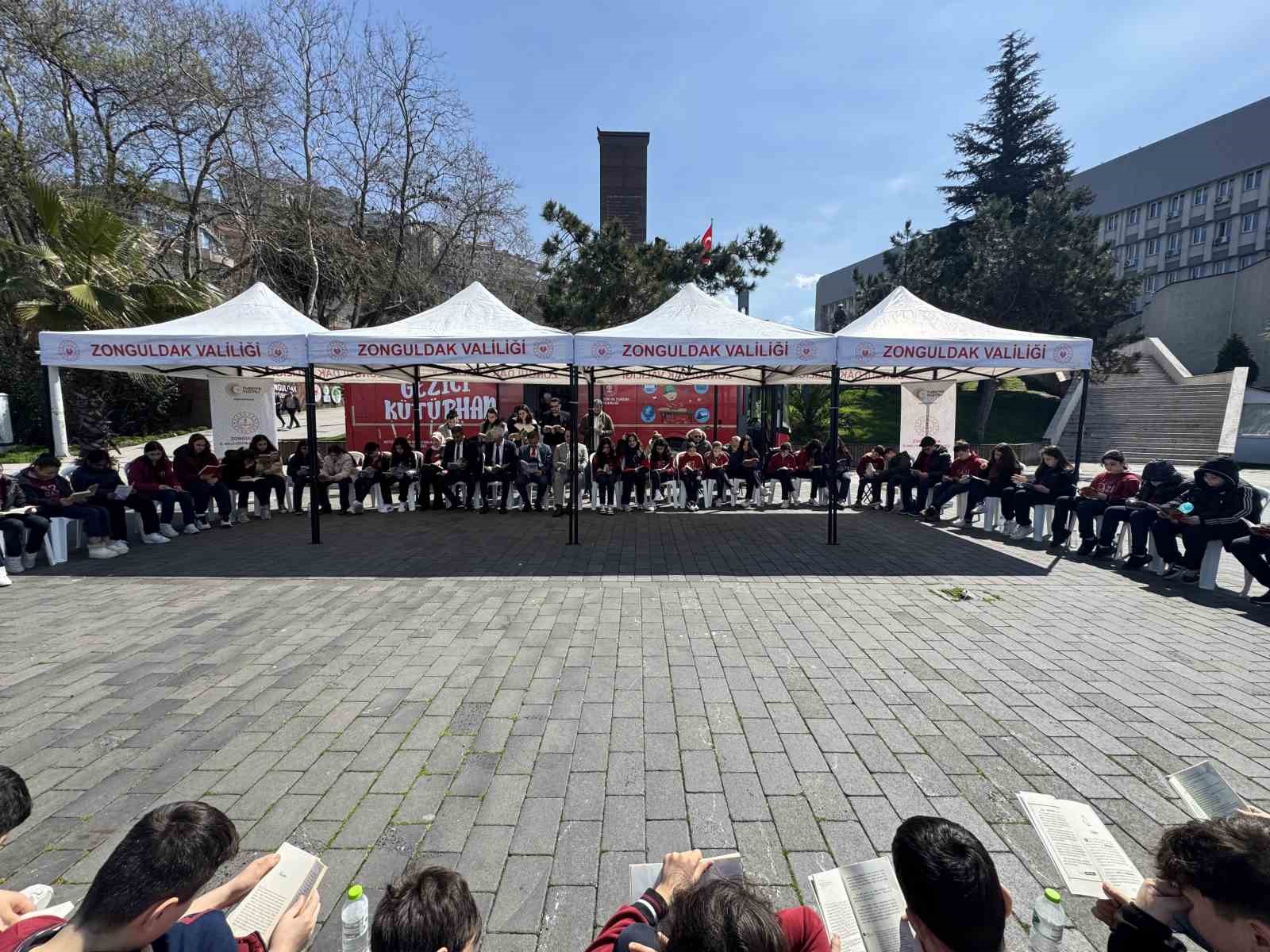 Zonguldak’ta sahil bandında, yoğun katılımla "Kitap Okuyoruz" etkinliği düzenlendi. 81 ilde eş zamanlı olarak İl Kültür ve Turizm Müdürlüğü ile İl Halk Kütüphanesi iş birliğinde, Kütüphane Haftası kapsamında sahil bandında "Kitap Okuyoruz" etkinliği gerçekleştirildi. Etkinliğe İl Kültür ve Turizm Müdürü Taner Dursun, öğrenciler ve vatandaşlar katıldı. Vatandaşlar ve öğrenciler, gezici kütüphaneden seçtikleri kitapları alarak yarım saat boyunca kitap okudu. Düzenlenen etkinlikle, vatandaşlara ve çocuklara kitap okuma alışkanlığı kazandırılması hedefleniyor.